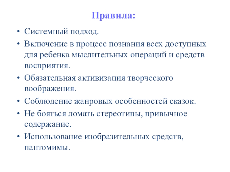 Соблюдение жанровых особенностей сказок.