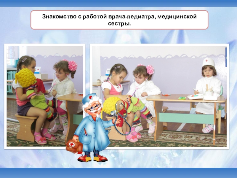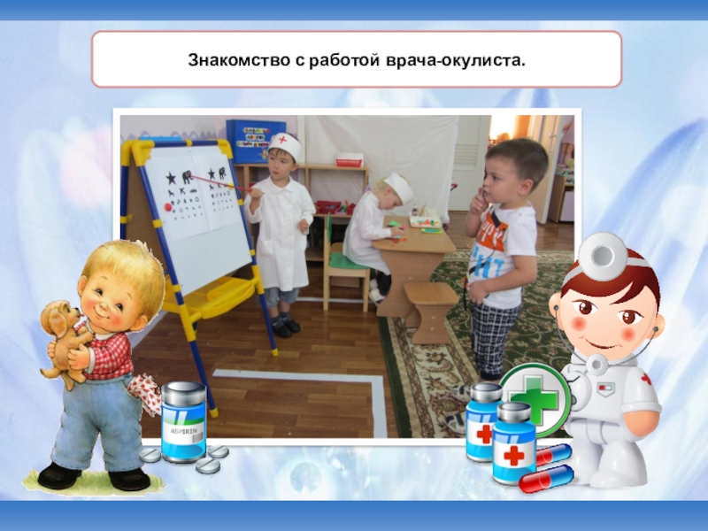 градусник, шприц, бинт, зеленка, вата, фонендоскоп, витамины, врач-педиатр, рецепт.