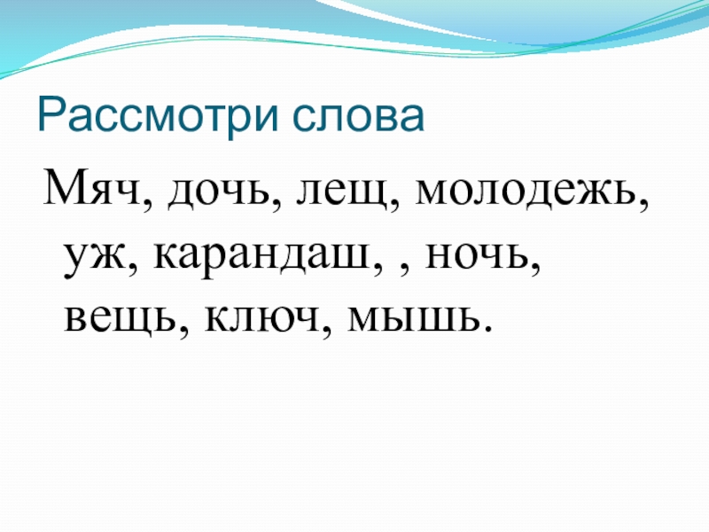 Дочь, молодежь, ночь, вещь, мышь.