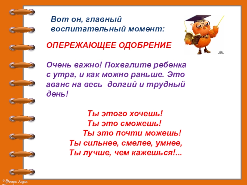 Очень важно! Похвалите ребенка с утра,
