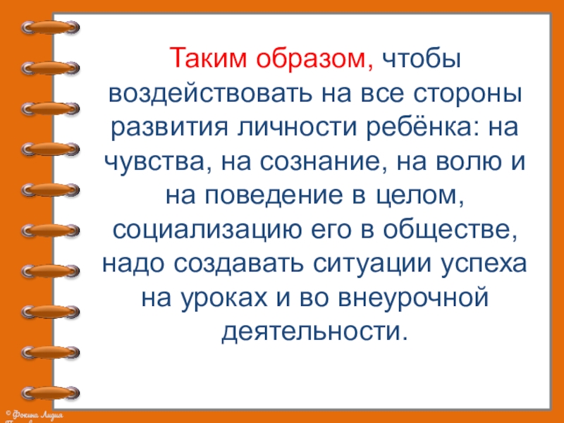 Слайд 34Таким образом, чтобы воздействовать на все стороны развития личности ребёнка: на