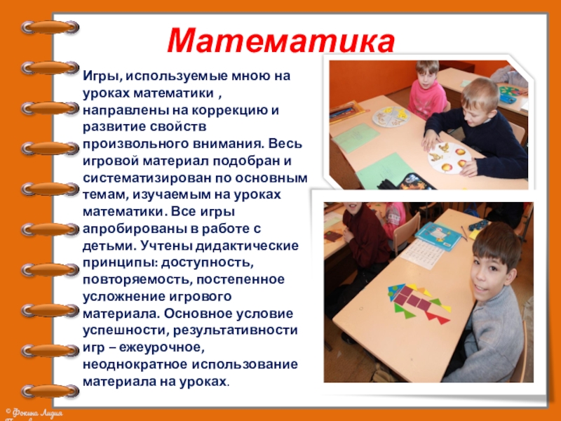 Игры, используемые мною на уроках математики , направлены на коррекцию и