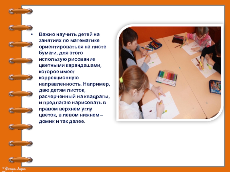 Слайд 13Важно научить детей на занятиях по математике ориентироваться на листе бумаги,