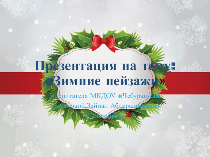 Презентация на тему: «Зимние пейзажи»Воспитателя МКДОУ «Чебурашка»Гамзатовой Зайнап АбдурашитовныС.Ленинаул