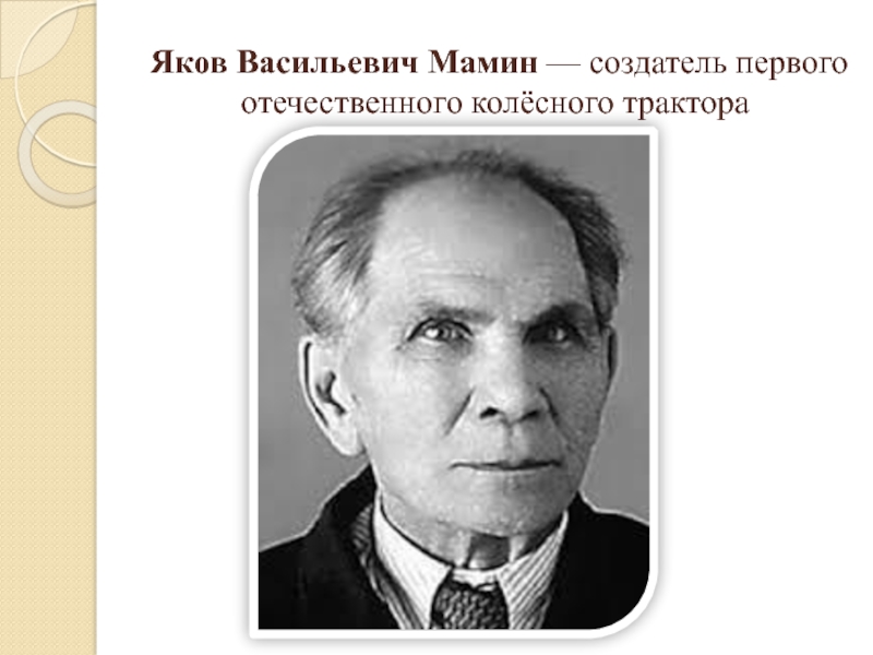 Слайд 10 Яков Васильевич Мамин — создатель первого отечественного колёсного трактора