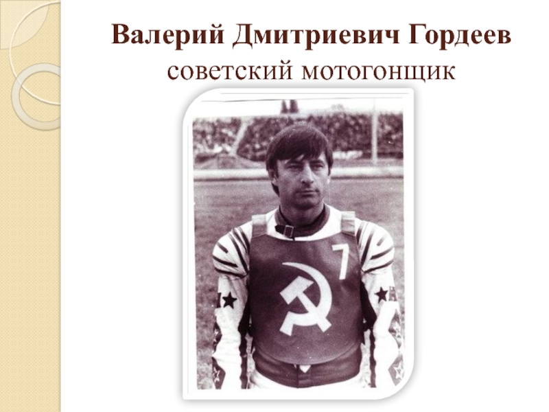Слайд 18Валерий Дмитриевич Гордеев советский мотогонщик