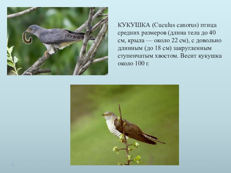 Приемные родители неустанно кормят кукушонка как в гнезде, так и еще в течение 1—1,5 месяцев после того, как он оставит его. Аппетит у кукушонка отменный: от зари до зари, а часто и дольше маленькие птички таскают еду громадному по сравнению с ними подкидышу, который получает ее по 200—300, а иногда и более раз в день.