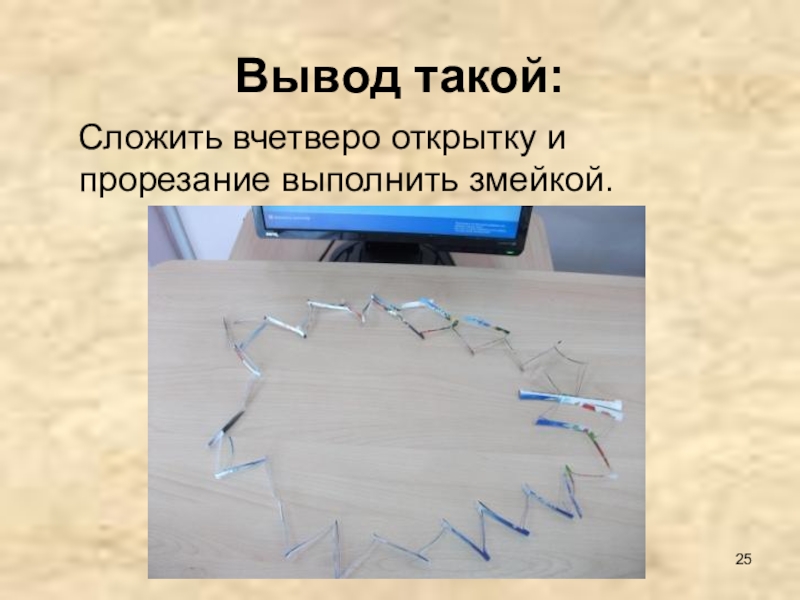 Сложить вчетверо открытку и прорезание выполнить змейкой.