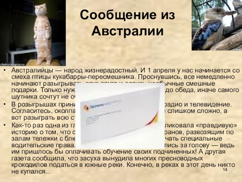 Австралийцы — народ жизнерадостный. И 1 апреля у нас