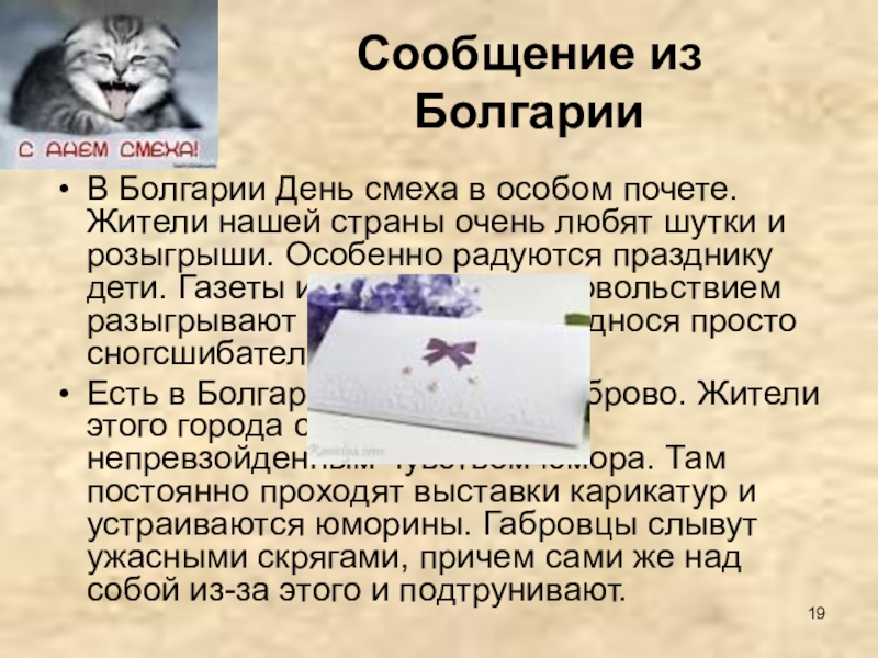 многое узнаем о том, как празднуют День смеха в разных странах.