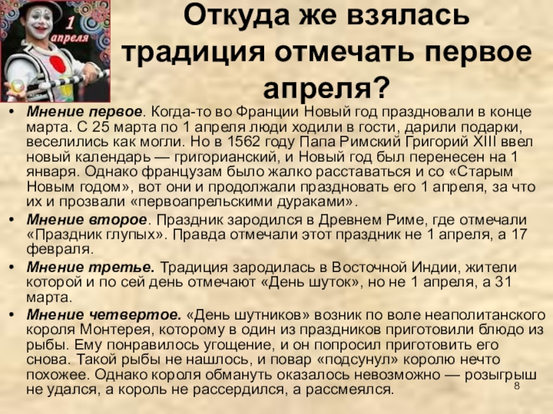 Слайд 8Откуда же взялась традиция отмечать первое апреля?
