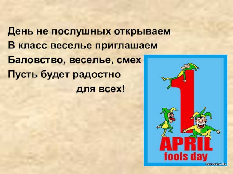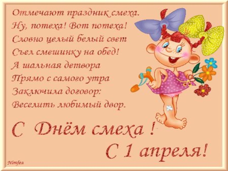 вот сегодня мне выпала такая возможность, и это благодаря чудесному дню – 1 апреля! Сегодня я проведу шуточные уроки для повышения улыбаемости и хохотаемости.