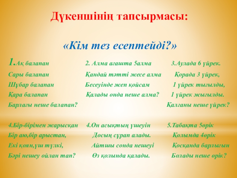Тақырыбы: “1-ден 10 дейінгі сандар ”