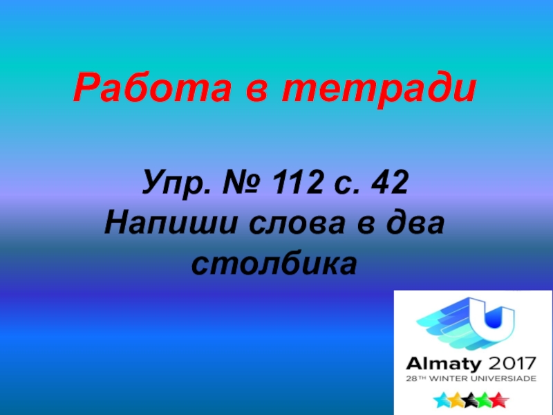 Работа в тетрадиУпр. № 112 с. 42Напиши слова в два столбика