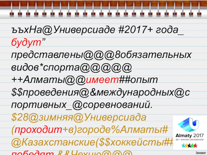 ъъхНа@Универсиаде #2017+ года_ будут”представлены@@@8обязательных видов*спорта@@@@@++Алматы@@имеет##опыт$$проведения@&международных@спортивных_@соревнований.$28@зимняя@Универсиада(проходит+в)городе%Алматы#@Казахстанские($$хоккейсты## победят &&Чехию@@@