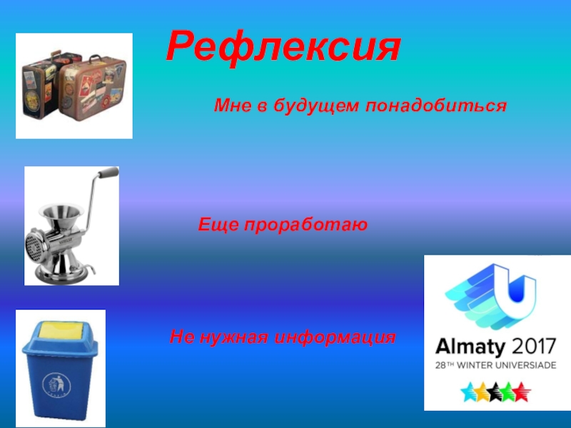 Рефлексия       Мне в будущем понадобитьсяЕще проработаюНе нужная информация