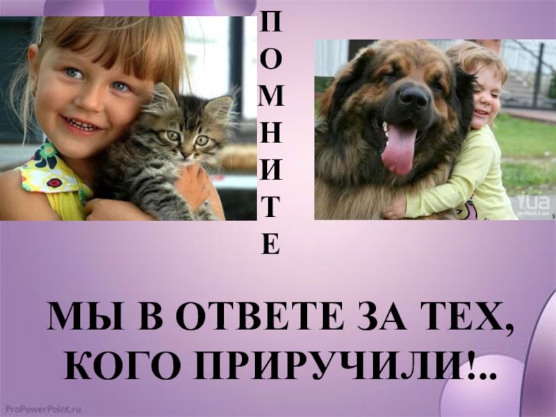 Мало кто задумывается, что за питомцем, которого мы клянчим у мамы с папой, нужно ухаживать. Помните, мы в ответе за тех, кого приручили. Это не простые слова, это жизнь, это правила доброты и ответственности перед тем, кто так тебя любит, кто ждет твоего возвращения домой, кто готов быть с тобою рядом всю жизнь!