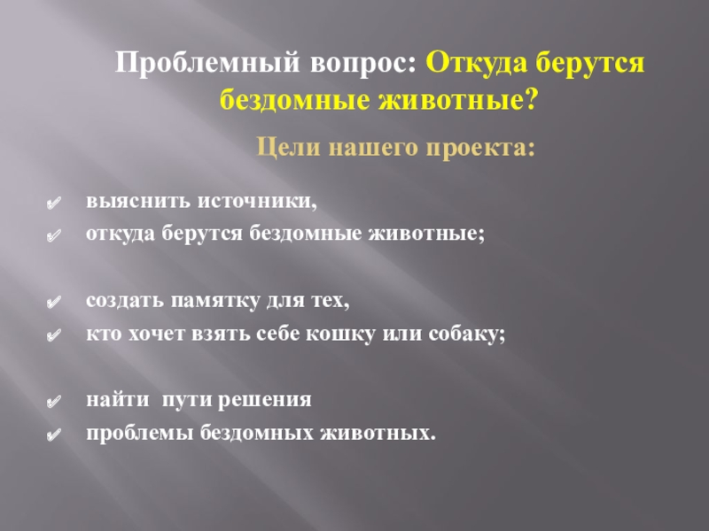 Слайд 3Проблемный вопрос: Откуда берутся бездомные животные?