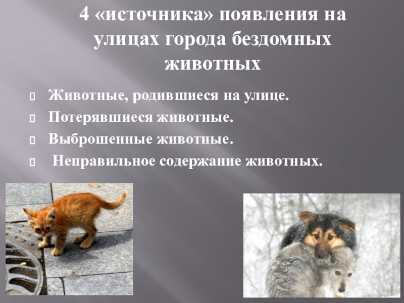 Слайд 10На улицах города появляются бродячие животные, потому что их выкидывают из