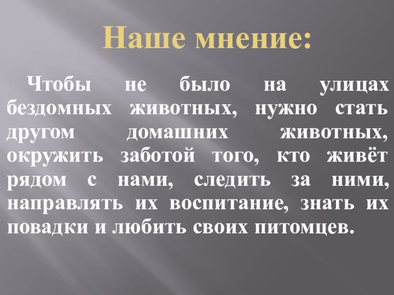 Слайд 15Я считаю, что бездомные животные появляются на улицах городов из-за предательства