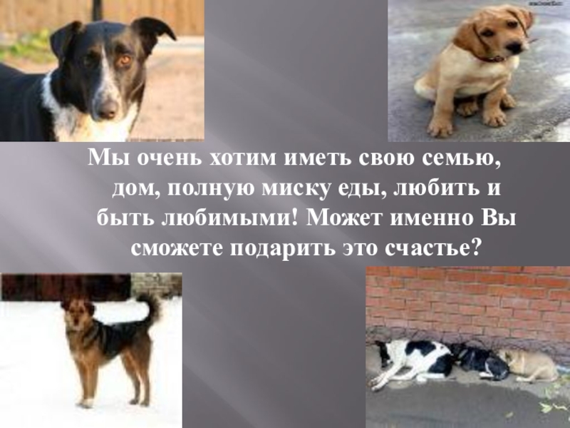 Слайд 20Мы очень хотим иметь свою семью, дом, полную миску еды, любить