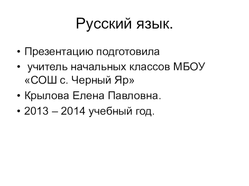 Русский язык.Презентацию подготовила учитель начальных классов МБОУ «СОШ с. Черный Яр» Крылова Елена Павловна. 2013 – 2014