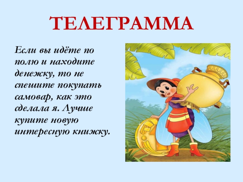 ТЕЛЕГРАММАЕсли вы идёте по полю и находите денежку, то не спешите покупать самовар, как это сделала я.