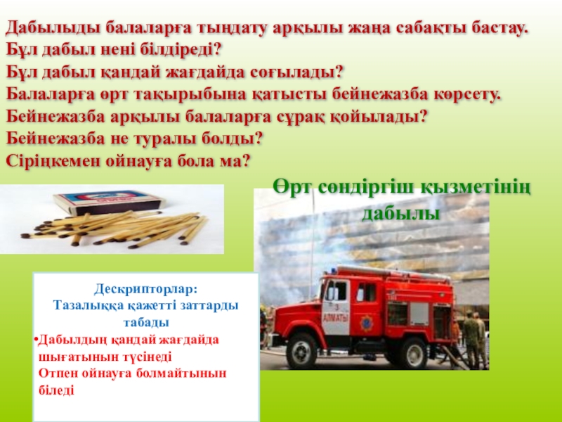 Үйдегі қауіпті заттар бейнеленген суреттерді жұмбақтың сипаттау белгісіне қарай сәйкестендіріп жапсыр