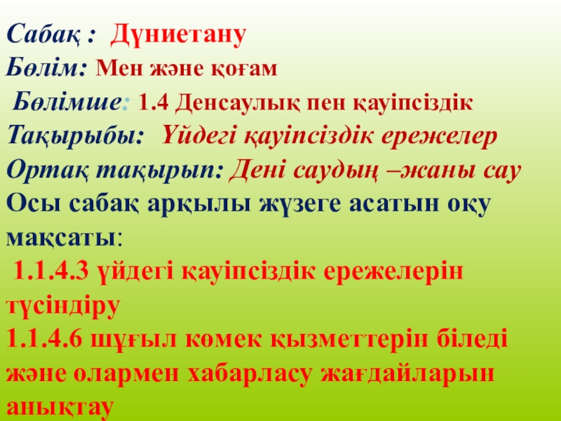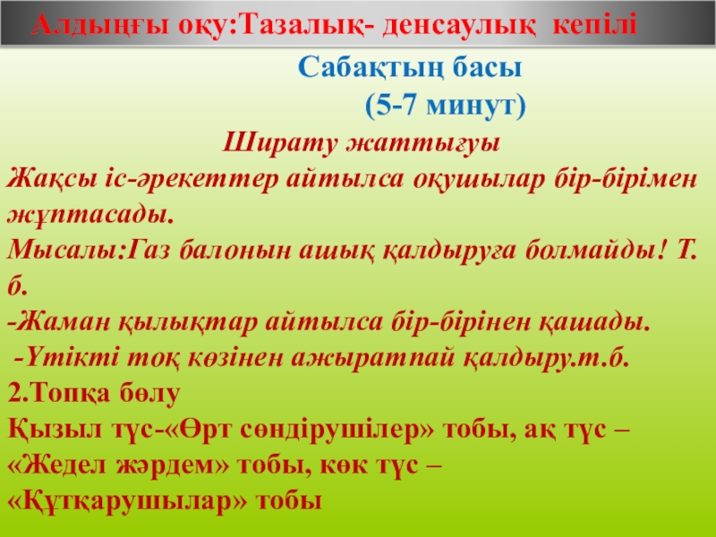 Жеке бастың гигиена туралы толық түсінік қалыптастыру