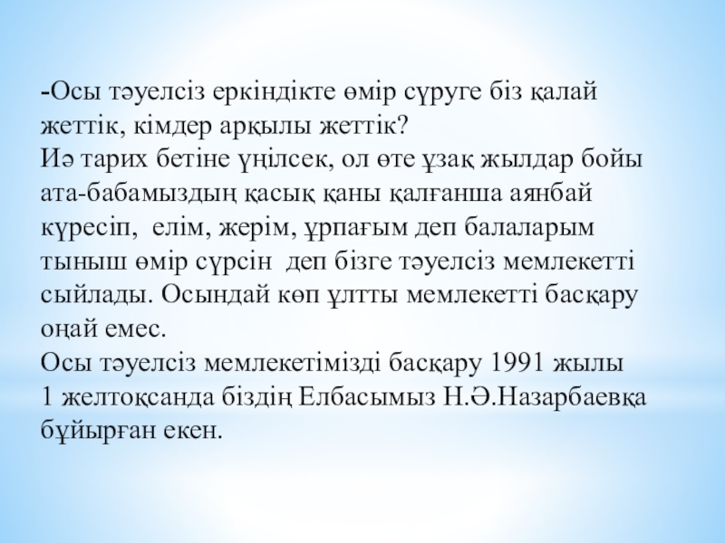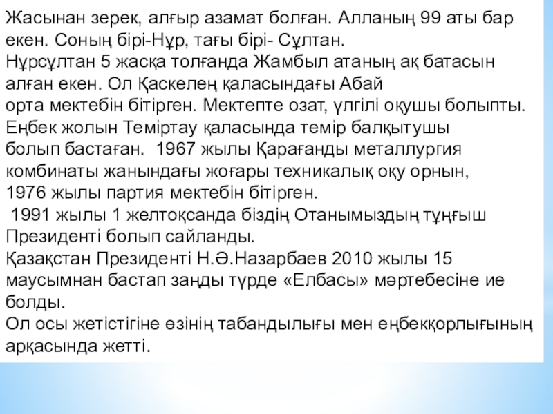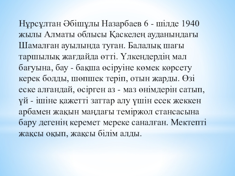 туралы, Елбасының туып-өскен жері туралы мағлұмат беру.