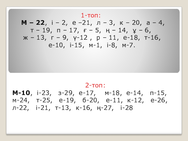М-10, і-23, з-29, е-17, м-18, е-14, п-15, м-24, т-25, е-19, б-20, е-11, к-12, е-26, л-22, і-21, т-13, к-16, ң-27, і-28