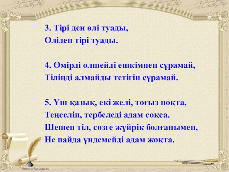 Слайд 83. Тірі ден өлі туады,