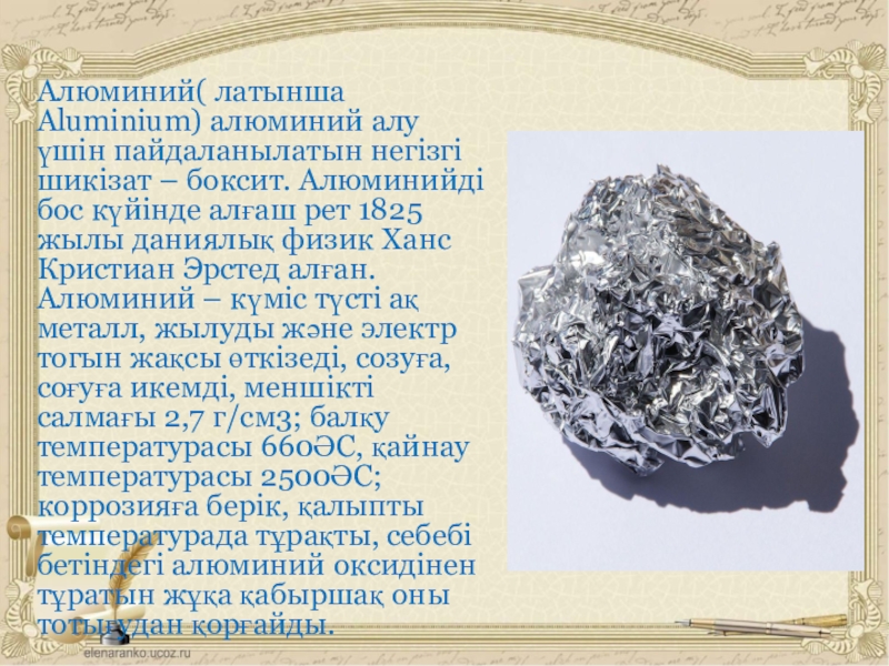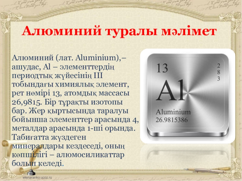 Слайд 14Алюминий туралы мәлімет