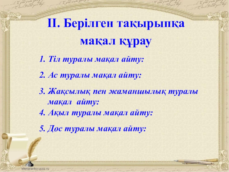 Слайд 4ІІ. Берілген тақырыпқа