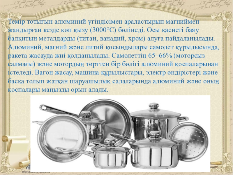 Слайд 19Бояу өндірісінде, үй жабдықтарын даярлауға, прожектордың айнасы ретінде қолданылатын алюминийді басқа
