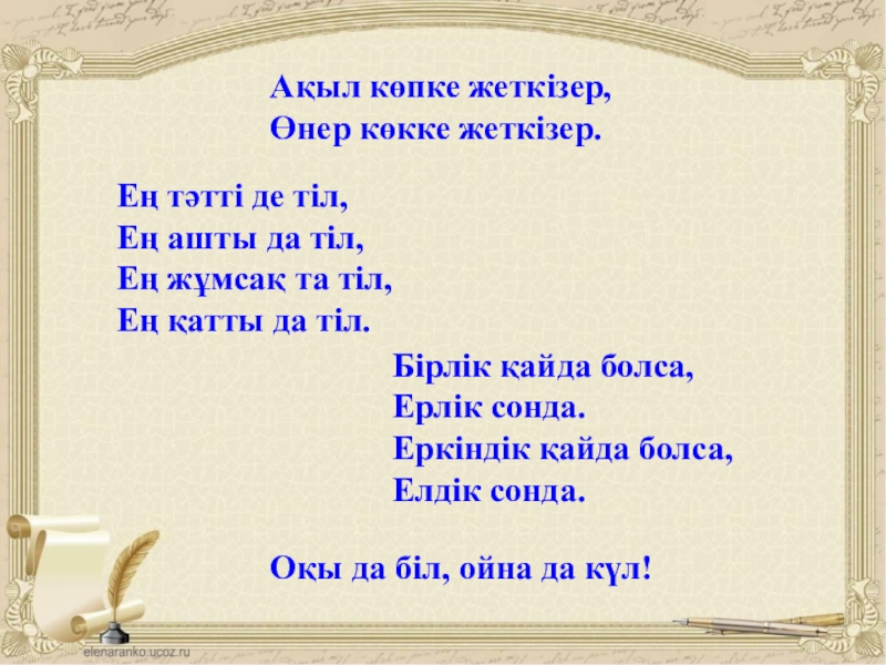 Слайд 2Ақыл көпке жеткізер,