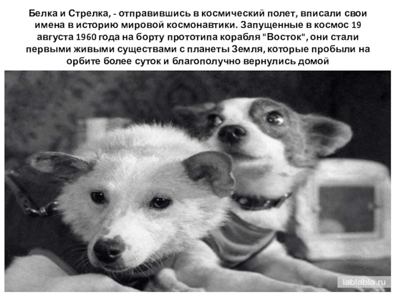 в историю мировой космонавтики. Запущенные в космос 19 августа 1960 года на борту прототипа корабля "Восток", они стали первыми живыми существами с планеты Земля, которые пробыли на орбите более суток и благополучно вернулись домой