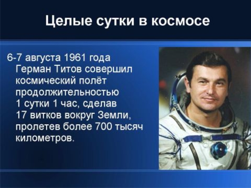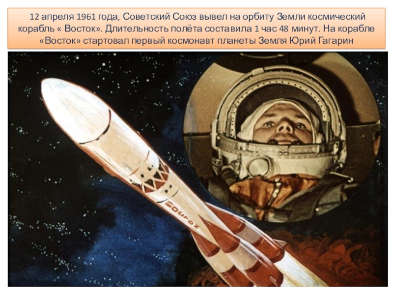12 апреля 1961 года, Советский Союз вывел на орбиту Земли космический корабль « Восток». Длительность полёта составила