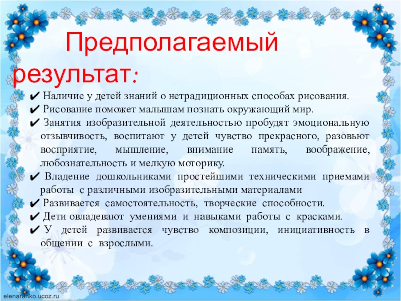 Содействовать знакомству родителей и педагогов с нетрадиционными техниками рисования;
