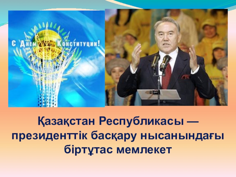 Слайд 8Қазақстан Республикасы — президенттiк басқару нысанындағы бiртұтас мемлекет