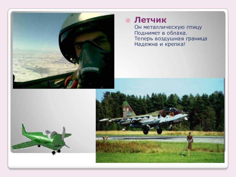 Слайд 11Летчик Он металлическую птицу Поднимет в облака. Теперь воздушная граница Надежна и крепка!