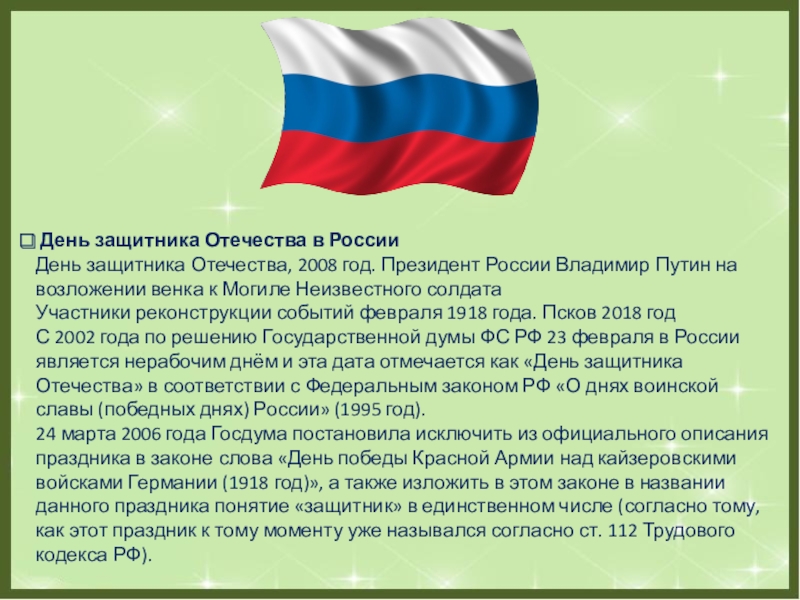 Слайд 6 День защитника Отечества в России
