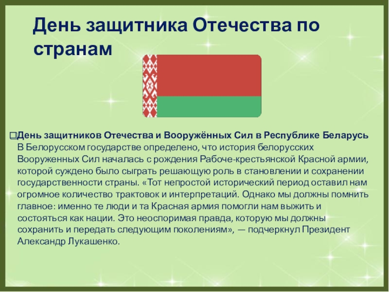 Слайд 4День защитника Отечества по странам