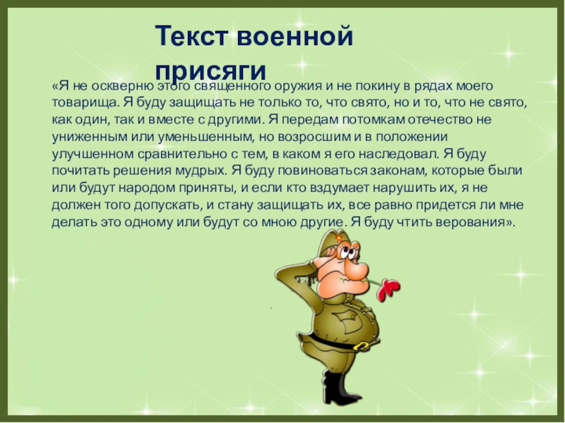 Слайд 9Текст военной присяги