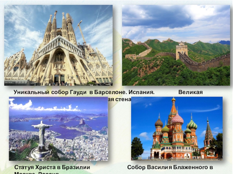 Статуя Христа в Бразилии Собор Василия Блаженного в Москве. Россия
