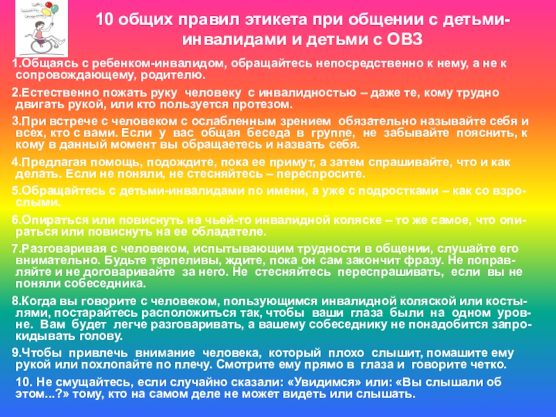 Обращайтесь с детьми-инвалидами по имени, а уже с подростками – как со взро-слыми.