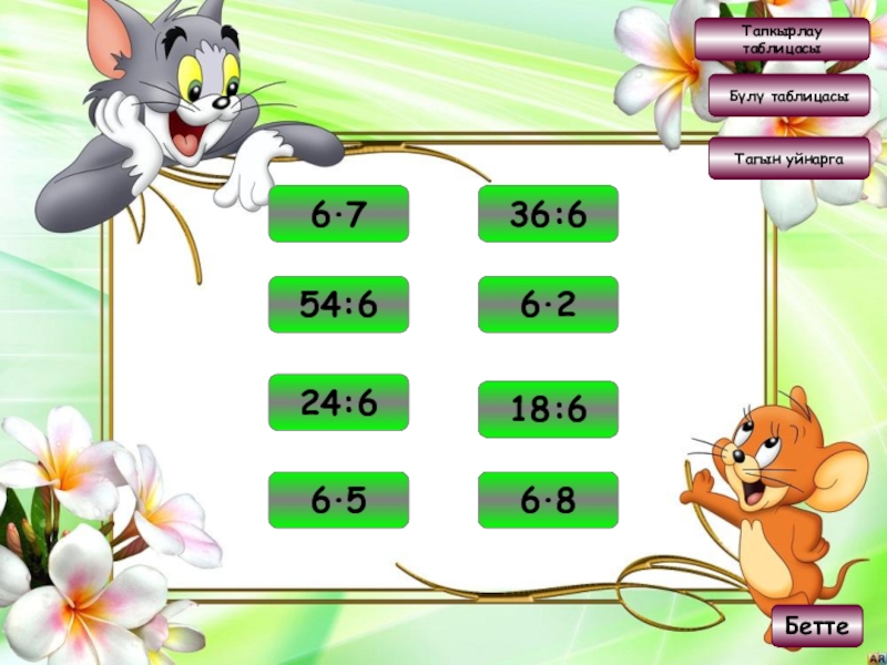 Тапкырлау таблицасыБүлү таблицасыБеттеТагын уйнарга126·2306·5426·7486·8318:6424:6636:6954:6