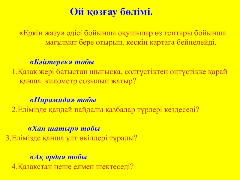 «Еркін жазу» әдісі бойынша оқушылар өз топтары бойынша