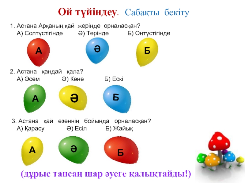 А) Солтүстігінде Ә) Төрінде Б) Оңтүстігінде