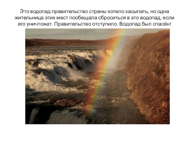 Слайд 33Это водопад правительство страны хотело засыпать, но одна жительница этих мест